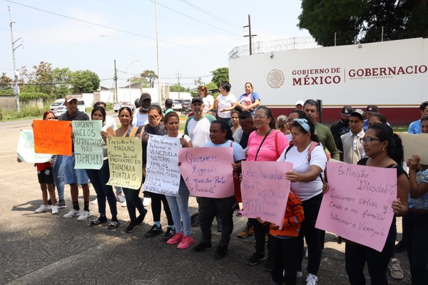 Migrantes venezolanos en Tapachula, Chiapas, aguardan noticias sobre la posibilidad de vuelos humanitarios que los repatrien a su país. Tras meses de permanecer en la ciudad, afectados por las políticas migratorias estadounidenses, estos migrantes han realizado manifestaciones pacíficas frente a la Estación Migratoria Siglo 21, solicitando al gobierno de Nicolás Maduro que facilite su retorno.